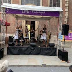 ‘Live in the Churchyard’ started as a single evening of opera singers on a small stage 4 years ago and is now encompassing almost a week. Cordwainer Alderman Sir Roger Gifford said “ It is great to see grass roots initiatives making a real cultural impact, involving local schools, bands and singers. Thousands of people will have heard something over the 4 day event!” We are already looking forward to next years event!