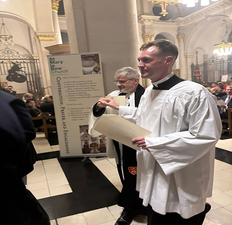 On 15th September, members of The ward of Cordwainer Club attended the induction and installation of Reverend Dr Simon Cuff as Rector of St Mary-le-Bow Cheapside. We enjoyed incredible music from the Academy of St Mary-le-bow and the service was led by the former Bishop of London and and now Archbishop of Canterbury the Rt Revd and Rt Hon Dame Sarah Mullally DBE. This was followed by a reception in the splendid surroundings of the NED.